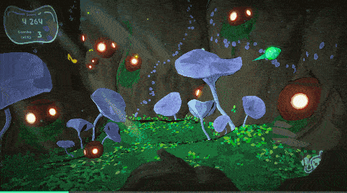 Bloup is a rythm game where you control a small creature with the mouse. You can hold <Left Click> to move faster. Burst bubbles when they turn green to release the spirits' melody!